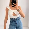 White Lace Back Crop Top. Cut from a heavyweight cotton jersey, double lined for the ultimate bust support. Featuring white floral lace back with a bow tie for a versatile fit. The perfect summer addition to your wardrobe.