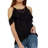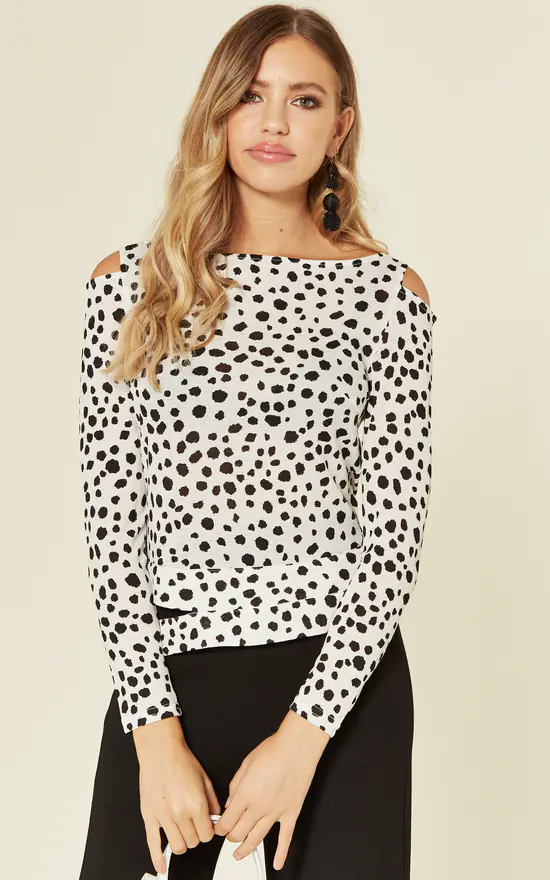 Featuring a cold shoulder design with a cut out hem detail, team it with some cropped black trousers and black wedges for a simple but sassy look.