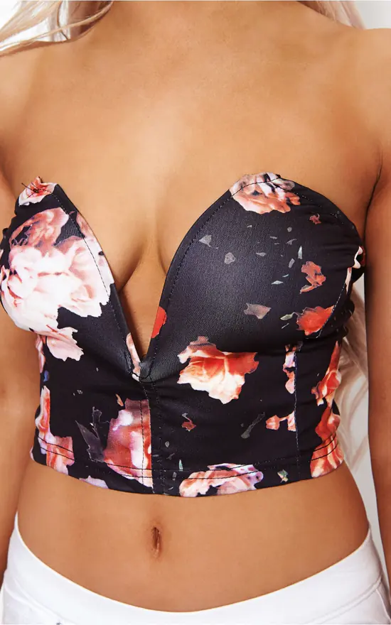 We are obsessed with bralet tops here at TFB HQ and this hand picked V front black and orange/red floral top is a worthy winner!