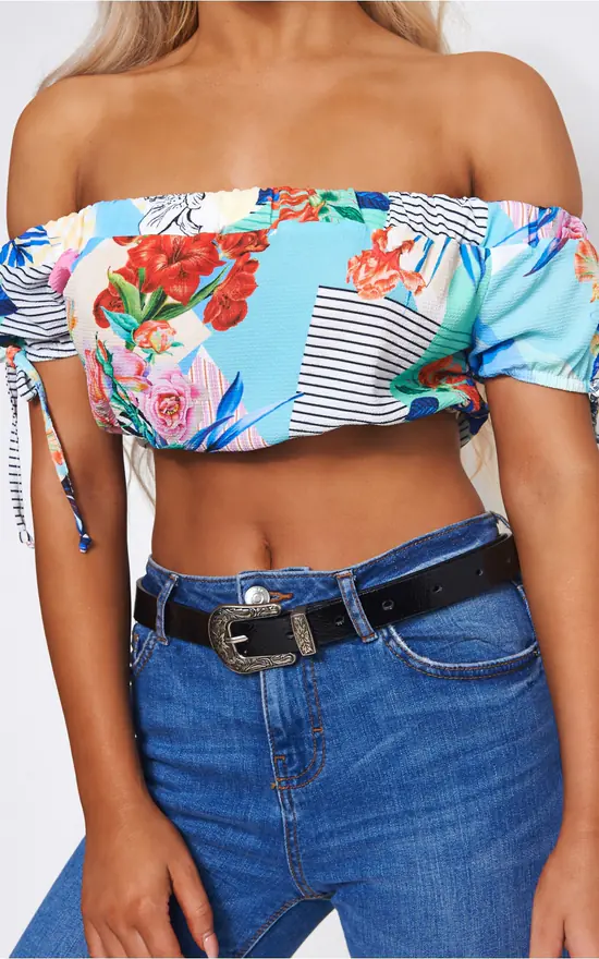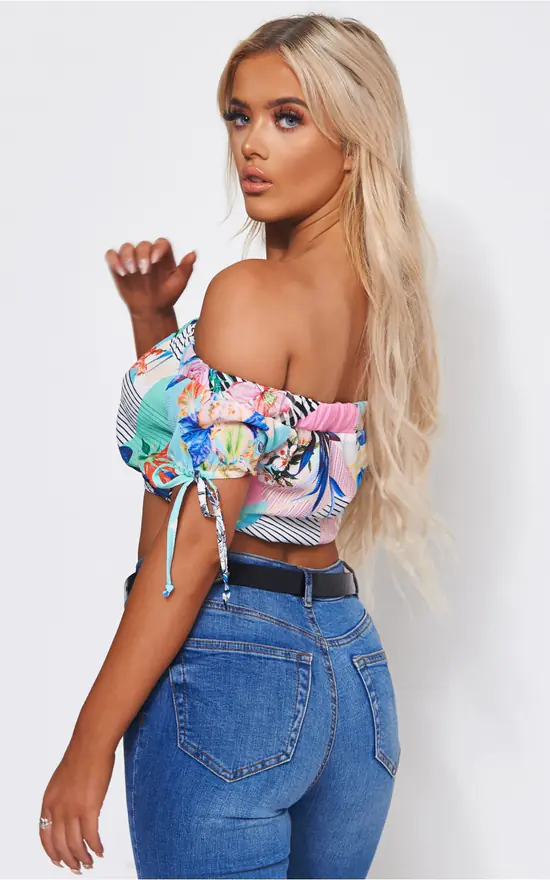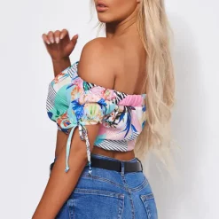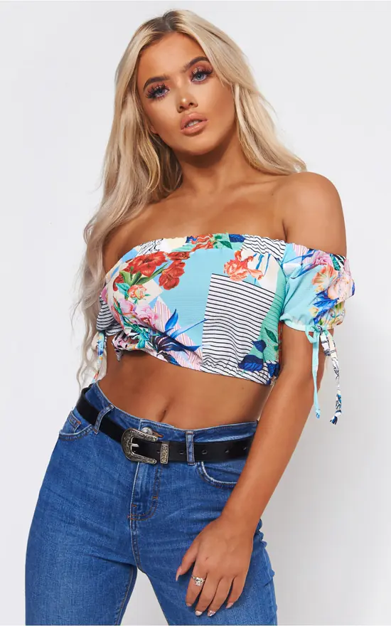 Look super pretty in this cute bardot crop top.