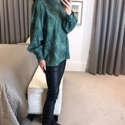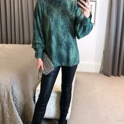 This gorgeous top is the perfect match for any outfit. Animal print blouse with high neck and relaxed fit.