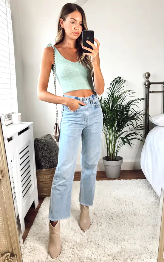 Fluffy Tie Shoulder Crop Cami _ Mint