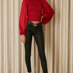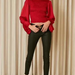 One of those pieces you just fall in love with, Urban Touch satin top in beautiful red tones.