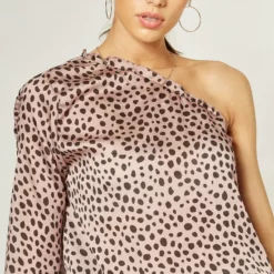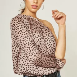 Leopard Print One Shoulder Top_ Blush
