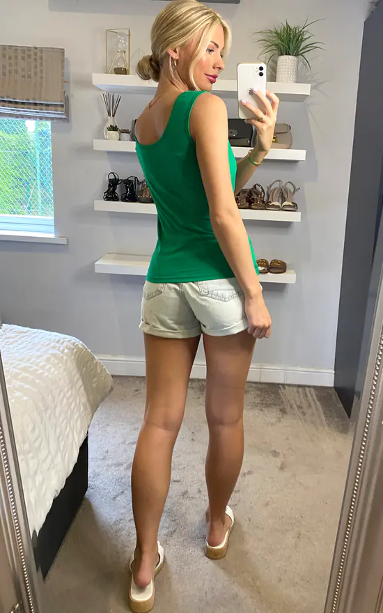 The Yumi Green Vest Top will be the most worn piece in your wardrobe this year. The 100% cotton top is breathable, soft and so versatile. The classic fit has a scoop neck and is cropped at the hip. Wear with your favourite pair of jeans or denim skirt and trainers for an effortless look.